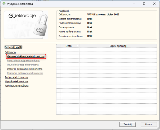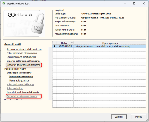 3. W zależności od tego, czy deklaracja ma zostać wyeksportowana z podpisem, czy bez niego, wybrać odpowiednią opcję: Eksportuj deklarację elektroniczną lub Eksportuj podpisaną deklarację.