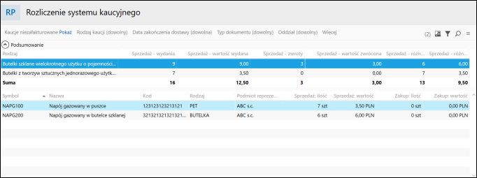 3. W górnej części raportu widoczne będzie podsumowanie wszystkich pozycji z podziałem na Rodzaj. W dolnej części widoczne będą zaś poszczególne asortymenty.