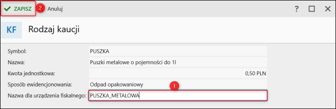Aby zmienić nazwę odpadu opakowaniowego na wydruku fiskalnym​, należy:​​​