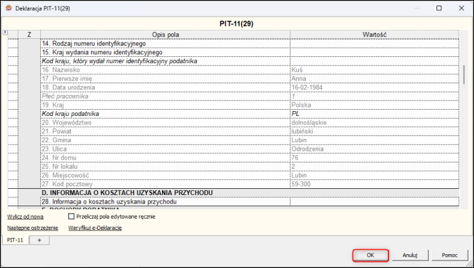 Temat należy do zbioru zagadnień z opisem pól w deklaracji PIT-11.