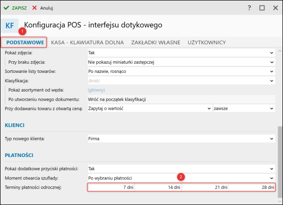 2. Na zakładce Podstawowe określić Terminy płatności odroczonej.