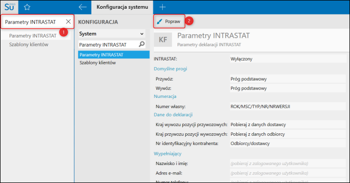 Kategoria: Intrastat, Konfiguracja, Parametry