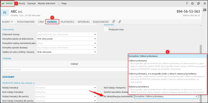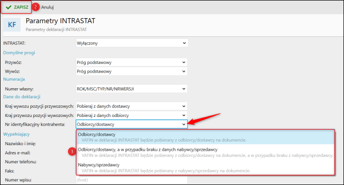 1. Odbiorcy/dostawcy – VATIN w deklaracji INTRASTAT będzie pobierany z odbiorcy/dostawcy na dokumencie.