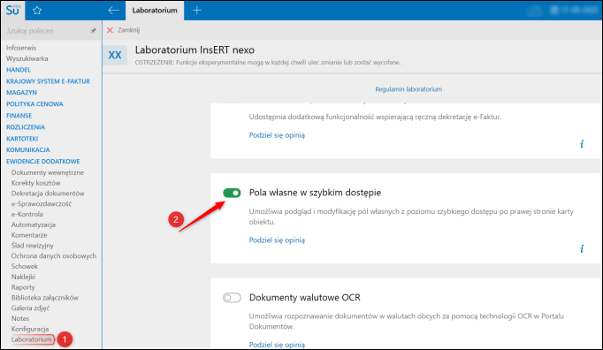 InsERT nexo – Jak aktywować pola własne w szybkim dostępie?