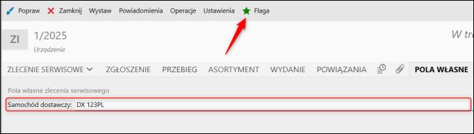 Po nadaniu zielonej flagi pole własne Samochód dostawczy automatycznie uzupełnia się wartością określoną w czynności automatu.