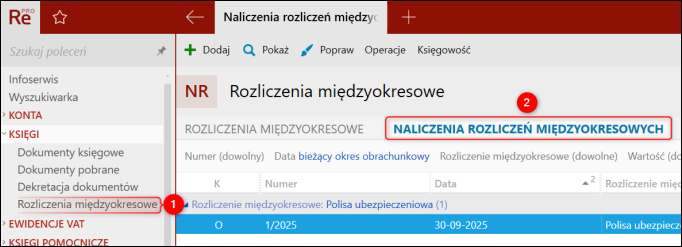 1. Przejść do modułu Księgi – Rozliczenia międzyokresowe​, a następnie do zakładki Naliczenia rozliczeń międzyokresowych.