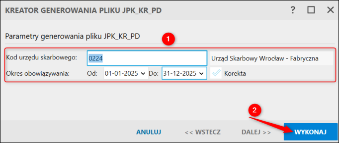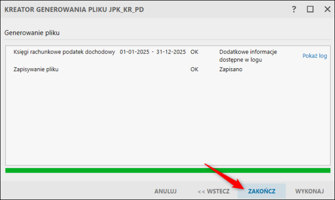 5. Zamknąć kreator generowania pliku JPK_KR_PD klikając Zakończ.