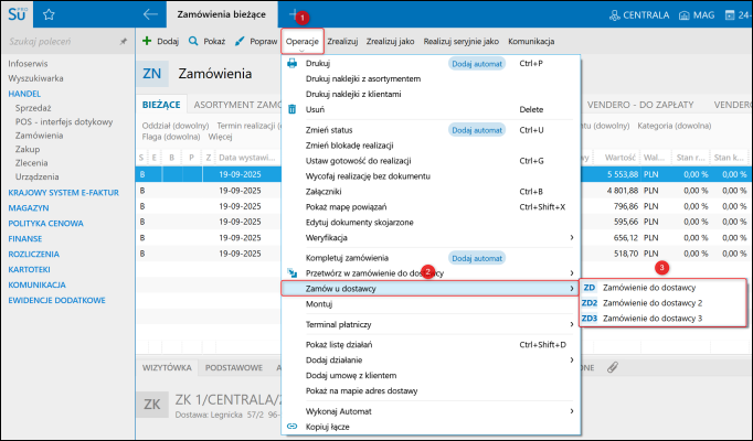 Przetwórz w zamówienie do dostawcy – uruchomiony zostanie kreator zamówień do dostawców.