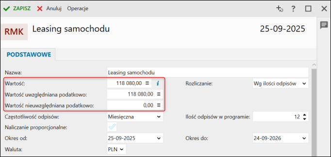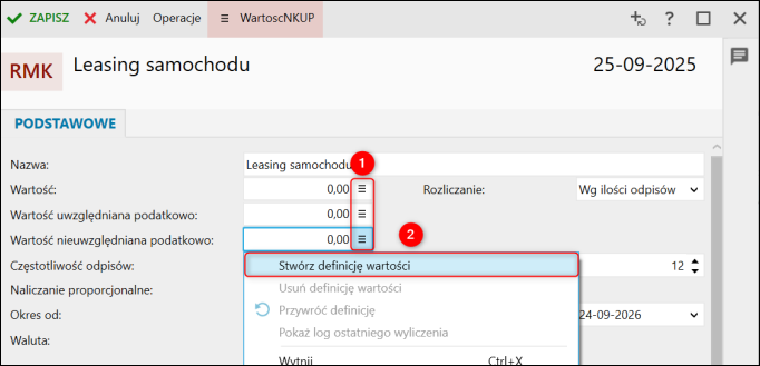 4. Program automatycznie wyliczy wartość na podstawie przygotowanej definicji.