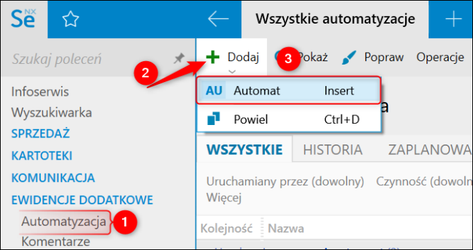 Uwaga! Opisywana funkcjonalność wymaga posiadania modułu Automatyzacja.