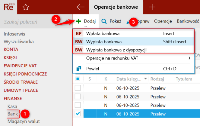 Programy serii InsERT nexo umożliwiają wprowadzanie nowych operacji bankowych, w tym operacji prowizyjnych. W tym celu należy:​