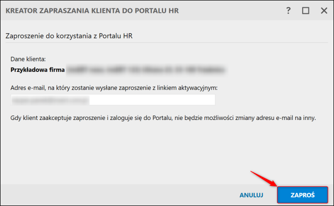 3. Po wprowadzeniu adresu e-mail, na który ma zostać wysłane zaproszenie zatwierdzić przyciskiem Zaproś.