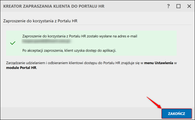 4. Zatwierdzić komunikat przyciskiem Zakończ. Artykuł e-Pomocy opisujący akceptację przesłanego zaproszenia dostępny jest tutaj​.​