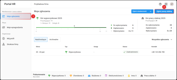 W celu zgłoszenia pracy zdalnej w Portalu HR należy: