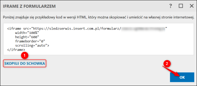 2. W oknie, które się wyświetli kliknąć Skopiuj do schowka i zamknąć okno przyciskiem Ok.