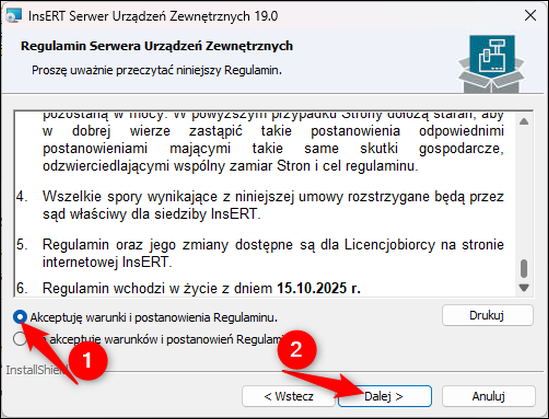 2. Zapoznać się z Regulaminem, zaznaczyć opcję Akceptuję warunki i postanowienia Regulaminu i kliknąć Dalej.