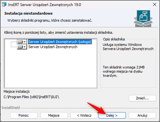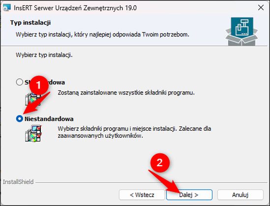 3. Skorzystać z opcji Niestandardowa i przejść Dalej.