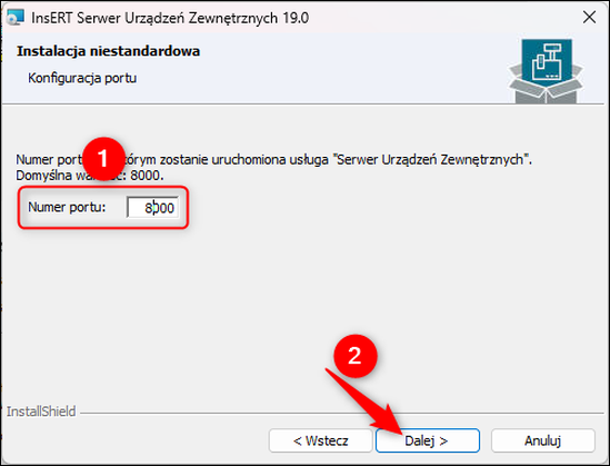 5. Uzupełnić pole Numer portu i przejść Dalej.