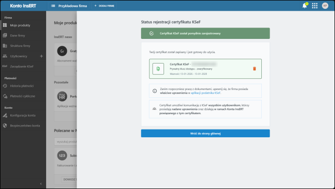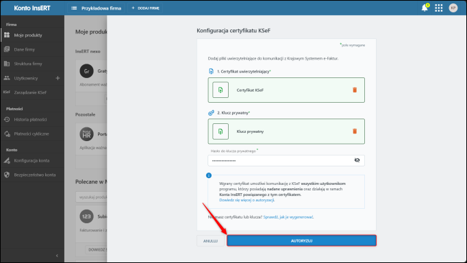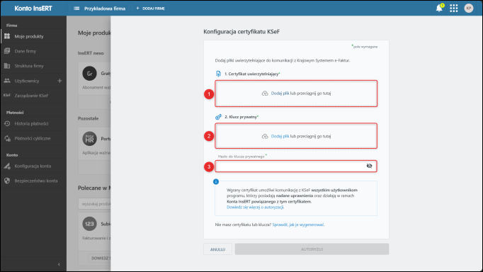Konto InsERT – Jak wgrać certyfikat KSeF?