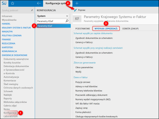 1. Przejść do modułu Konfiguracja – Parametry KSeF do zakładki Wysyłka (Sprzedaż) i skorzystać z opcji Popraw.