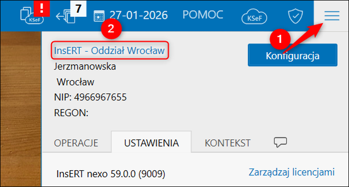 Subiekt nexo – Jak określić identyfikator wewnętrzny (IDwew) oddziału na potrzeby KSeF?