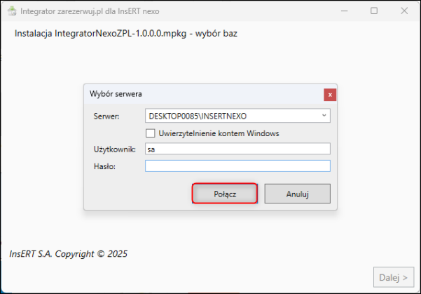 5. W oknie Wybór serwera kliknąć Połącz.