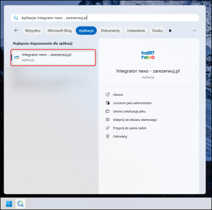 1. Wyszukać aplikację Integrator nexo - zarezerwuj.pl i ją uruchomić.