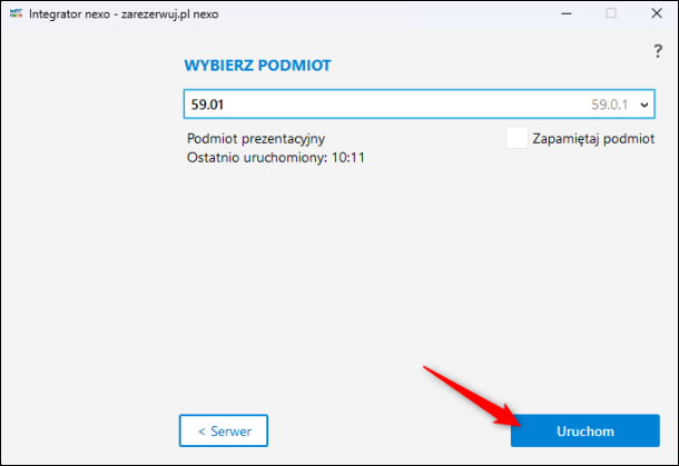 3. Wskazać Podmiot, na którym został zainstalowany Integrator, a następnie kliknąć przycisk Uruchom.