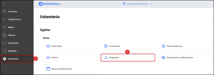 1. Zalogować się do aplikacji, przejść do menu Ustawienia, następnie w sekcji Firma kliknąć opcję Integracje.
