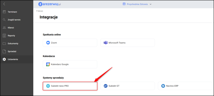 Aplikacja zarezerwuj.pl pozwala na integrację z programem Subiekt nexo PRO. Z wykorzystaniem integracji użytkownicy mają możliwość pełnej automatyzacji procesu wystawiania dokumentów sprzedaży (paragon, proforma, faktura, zamówienie) dla klienta. Dokument zostaje wystawiony w momencie stworzenia rezerwacji, zmiany statusu płatności lub zmiany statusu rezerwacji.