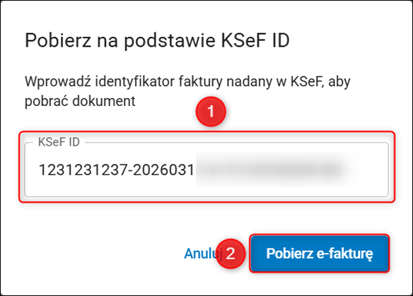 2. Uzupełnić KSeF ID, a następnie kliknąć Pobierz e-fakturę.