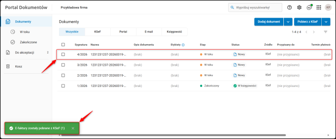 Jak pobrać e-Faktury do Portalu Dokumentów?