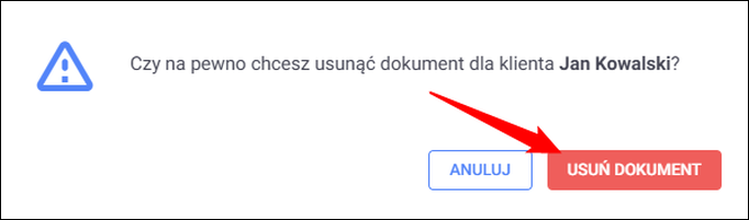 Po wykonaniu tej operacji status dokumentu zostanie zmieniony na Do usunięcia.​