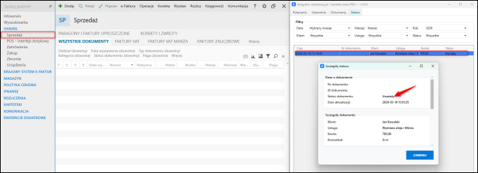 Po prawidłowym przetworzeniu operacji dokument zostaje usunięty z programu sprzedażowego i nie będzie już widoczny na liście dokumentów.​
