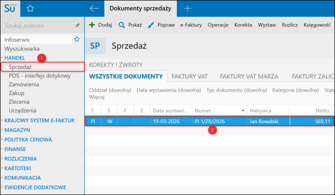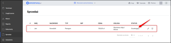 W module Sprzedaż pojawi się pozycja dokumentu o statusie Oczekujący.