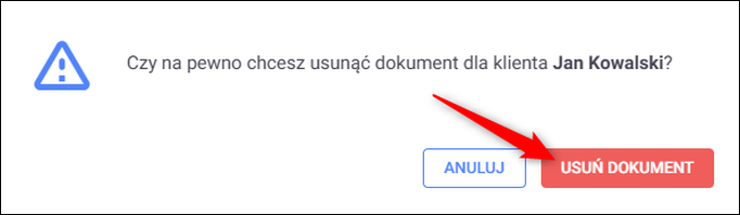 Po wykonaniu tej operacji status dokumentu zostanie zmieniony na Do usunięcia.​​