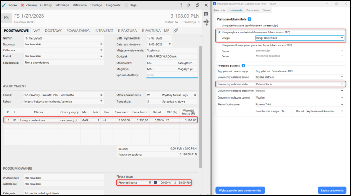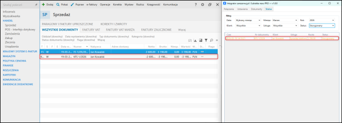 Dokument został wystawiony zgodnie z konfiguracją w Integratorze.