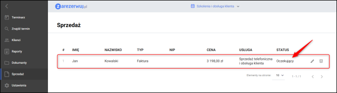W module Sprzedaż pojawi się pozycja dokumentu o statusie Oczekujący.