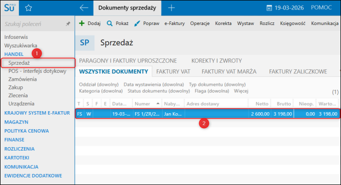 3. Wystawienie Faktury sprzedaży w Subiekcie nexo PRO;​
