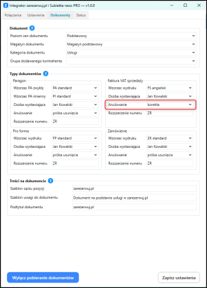 Jeżeli konieczne jest wystawienie korekty dokumentu, w konfiguracji Integratora należy ustawić parametr Anulowanie jako Korekta.