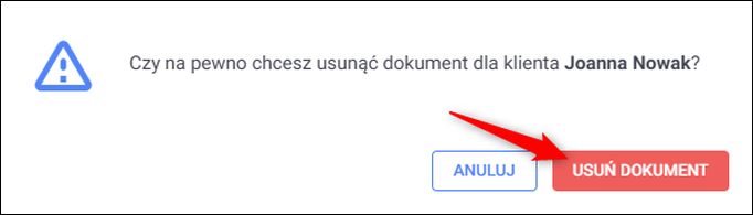 Potwierdzić klikając Usuń dokument.