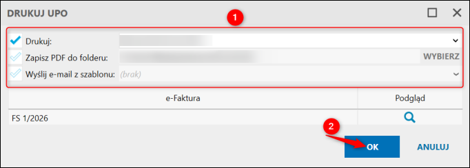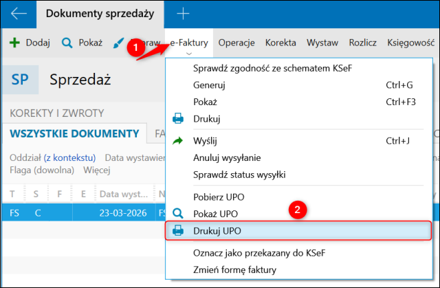 2. Skorzystać z opcji e-Faktury – Drukuj UPO.