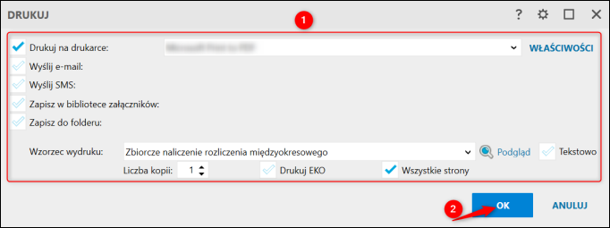 3. Dobrać ustawienia wydruku i kliknąć Ok.