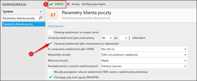 2. Zaznaczyć opcję Oznaczaj wiadomość jako przeczytaną po odpowiedzi i Zapisać zmiany.