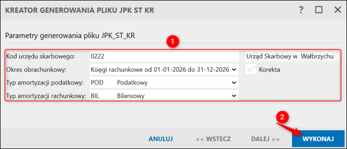 2. Określić prawidłowe parametry generowania deklaracji i kliknąć Wykonaj.