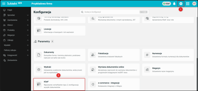 1. Przejść do Konfiguracji i wybrać KSeF.