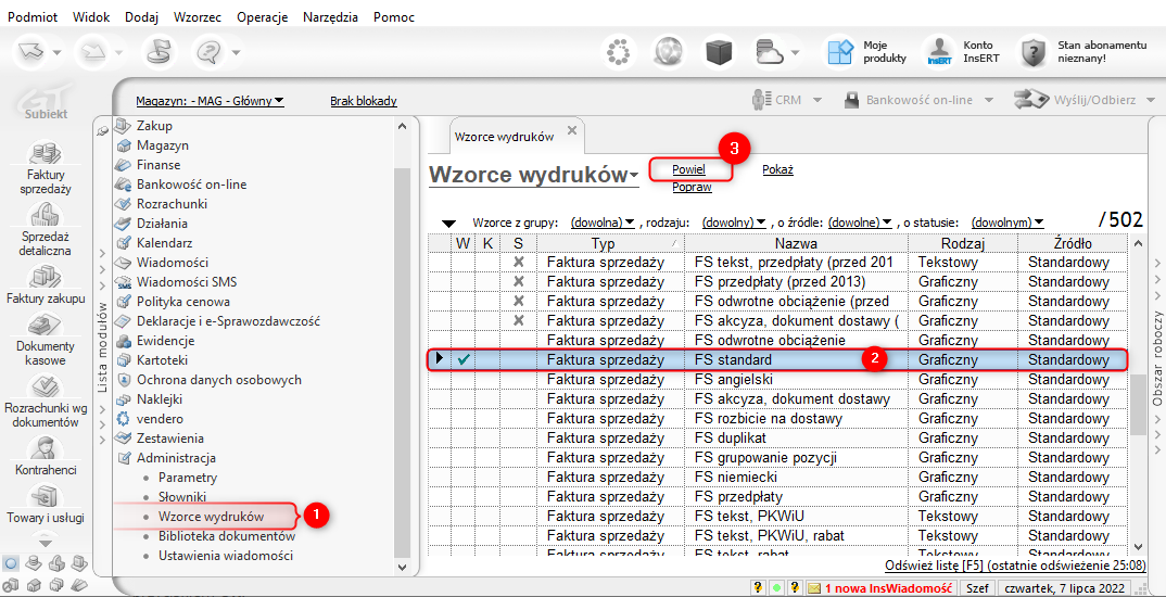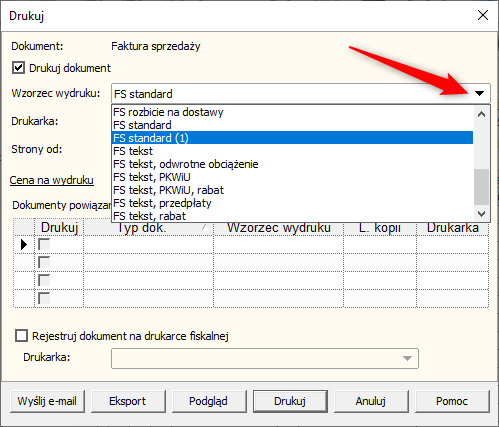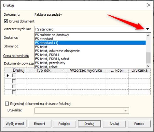 4. Przy wydruku faktury zmienić wzorzec na wcześniej przygotowany.