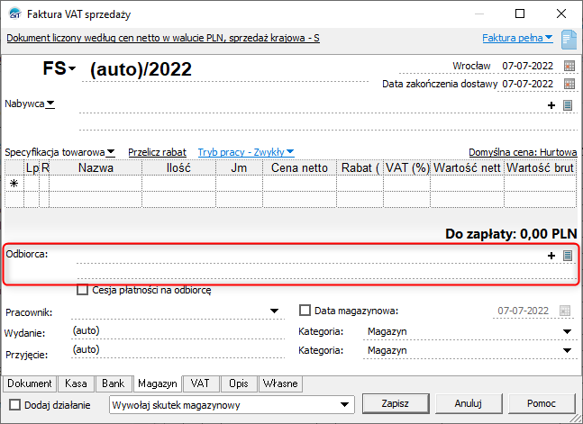 Subiekt GT – Jak wydrukować fakturę z dodatkową sekcją odbiorca?