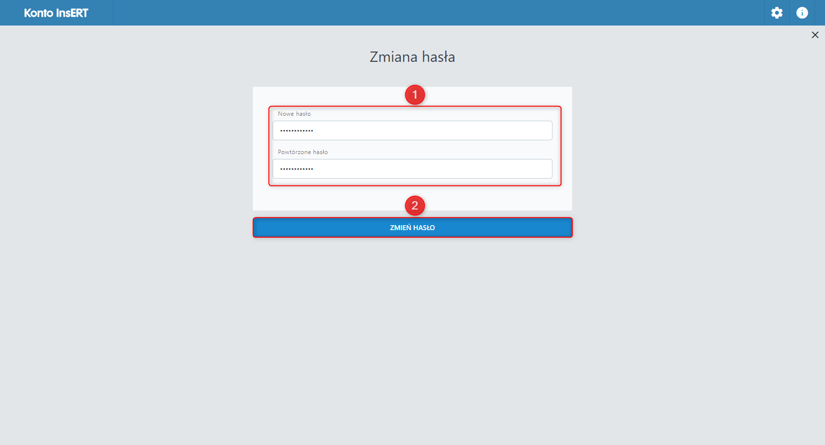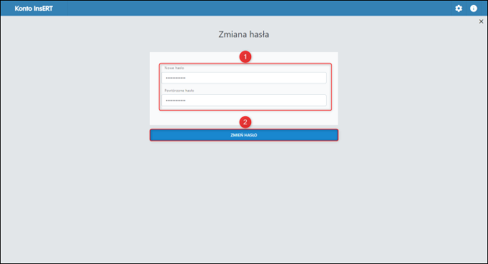 5. Ustalić nowe hasło i kliknąć przycisk Zmień hasło.