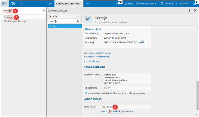 W celu podłączenia Konta InsERT do programu z serii InsERT nexo należy:
